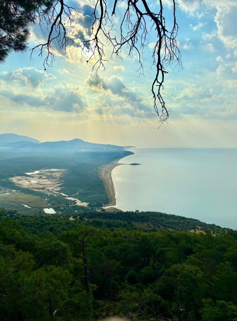 Pydnai içinden geçen Likya yolu sonrasında kaleyi dönerek yamaç boyunca devam edip Patara Plajı’nın doğusunda, Özlen Çayı’nın denizle buluştuğu yere indim. Bir köprüden karşıya geçtiğimde Patara Green Park karşımdaydı.