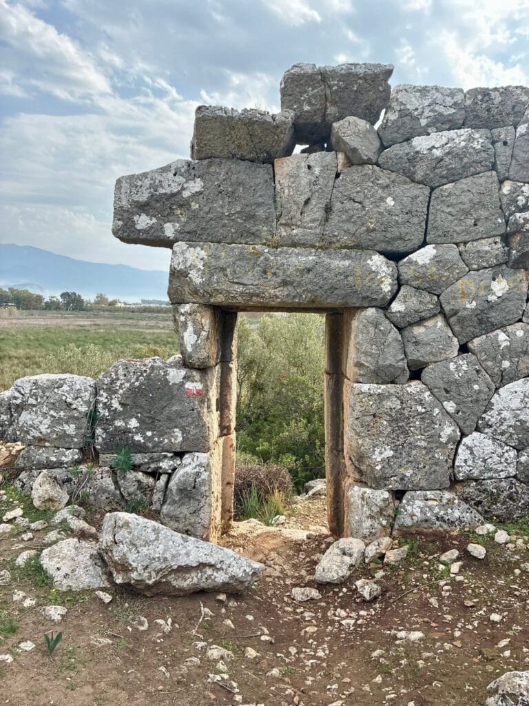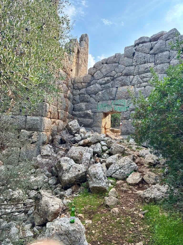 Bir süre sonra Pydnai Kalesi’ne vardım. Surların farklı taş işçiliği hayranlık uyandırıcıydı. Düzgün kesilmiş iri bloklar arasında adeta bir mühendislik düzeni vardı.