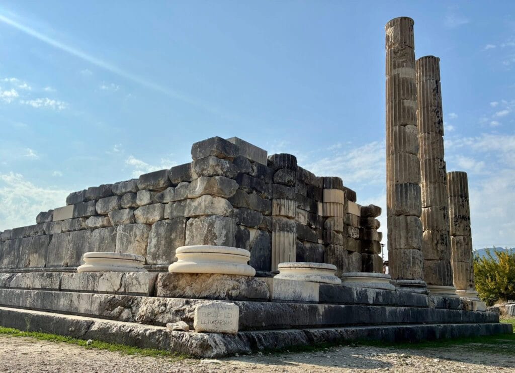 Orada biraz daha kalmak, o güzelliği daha uzun yaşamak isterdim; ancak zamanım kısıtlıydı. Yolum üzerindeki Letoon’u gezip görmek ve sonrasında hava kararmadan Ksantos’un bulunduğu Kınık’a ulaşmam gerekiyordu. Çünkü Ksantos bir günde gezilecek yer olmadığından birkaç gece kalmak için konaklama yeri de bulmalıydım.
