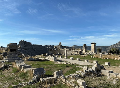 Bu sabah üç gece kaldığım Kadir Bey’in villasını artık terk ediyorum. Kınık’ta bir kahvaltı sonrası yeniden Likya Yolu’na girdim. Hafif bir yükselişle Ksantos’a çıktım. Solumda tiyatro, Harpy Anıtı; sağımda Bazilika ve Nekropollere giden Roma yolu. İki gün gezdiğim halde bitiremediğim Arnna(Ksantos)yı geride bırakırken son bir kare fotoğraf aldım. Yürümeyi özlemiştim ama asfalt biraz sıkıcıydı. Tehlikeli ve yürüyüşçülerin dikkatli olması gereken Fethiye-Kaş karayolunu geçip Çavdır yoluna girdim. Yol hâlâ asfalt ama solda paralel giden orman içi bir patika keşfettim. Artık çamların gölgesinde toprak patikada yürüyordum. Yer yer kamp alanları gözüme çarptı. Kınık’ta kalmak istemeyenler Çavdır’a doğru devam ederse buralarda rahatlıkla kamp kurabilirler. Bir süre sonra Çavdır’da düzgün görünen bir mekânda çay molası verdim. Çay berbattı. Bitirmeden kalktım.