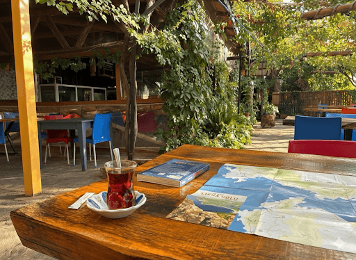 Bir süre sonra Üzümlü görünmeye başladı. Acıkmıştım. Elimdeki rehber kitapta Üzümlü’de alabalık yapıldığı yazıyordu. Usta Pide Restaurant’a varınca alabalık siparişimi verdim. Biraz beklemem gerekecekti. Bu arada gün boyu çaya hasret kalmıştım; arka arkaya birkaç bardak içtim. Aslında bugün Margaz’a kadar yürümeyi düşünüyordum; ama yemek gecikecek, saat de geç olacaktı. Üzümlü’de gecelemeye karar verdim. Hem günlüklerimi de yazabilirdim.